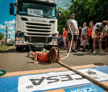Illetve van még a kamionhúzás, az egyik kedvenc számom, ahol nagyjából 8-9 tonnás kamionokat kell elhúzni különböző távokra.