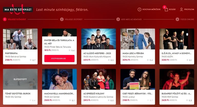 Szívesen járnál gyakrabban színházba, de a rohanós hétköznapok forgatagában nem tudsz hetekkel előre tervezni? Esetleg nem fér bele a kiadásaidba egy teljes árú színházjegy? Képzelj el egy világot, ahol az előadás napján is tudsz jegyet vásárolni kényelmesen, sorban állás nélkül, ráadásul féláron! Mindez persze már nem csak egy álomkép, hanem a Ma este Színház! által nyújtott lehetőség.